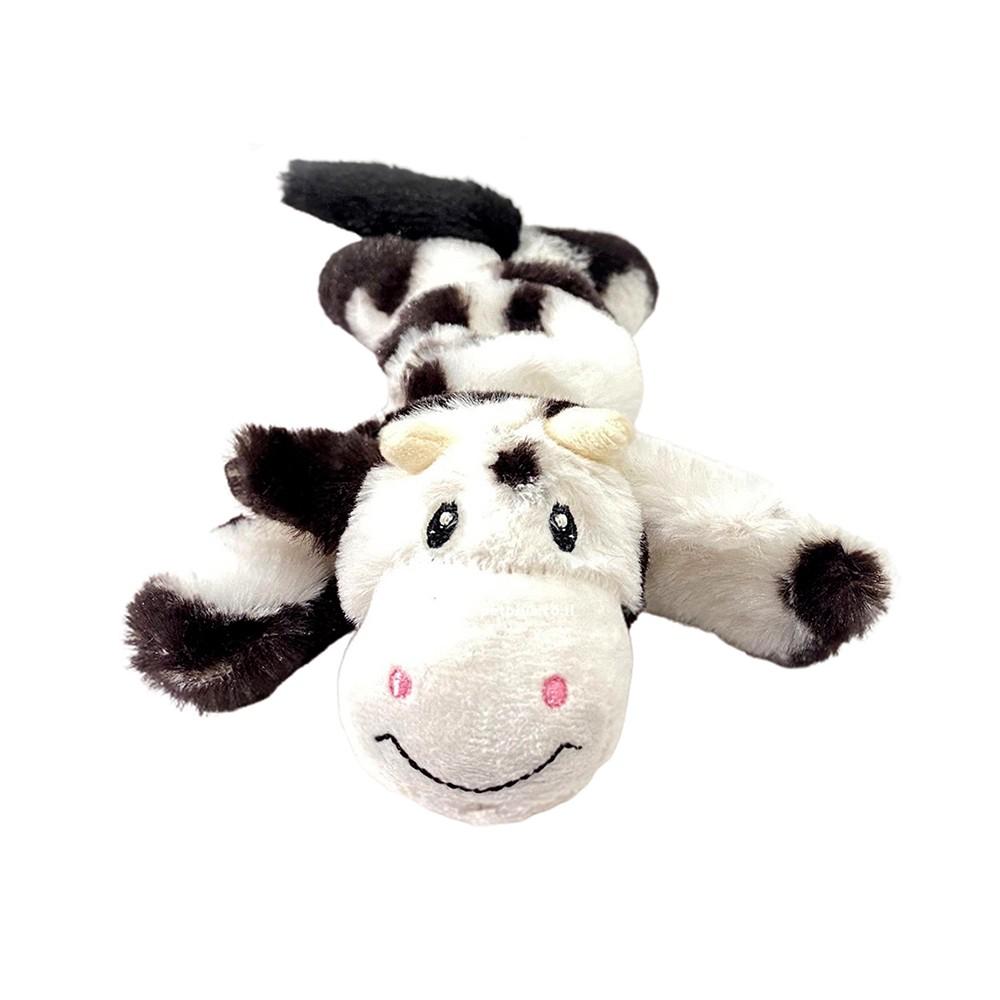 בובה נמתחת לכלב עם צפצפה 30 ס"מ נמתחת עד 40 ס"מ. צעצוע מדליק בצורת פרה עם כתמים.