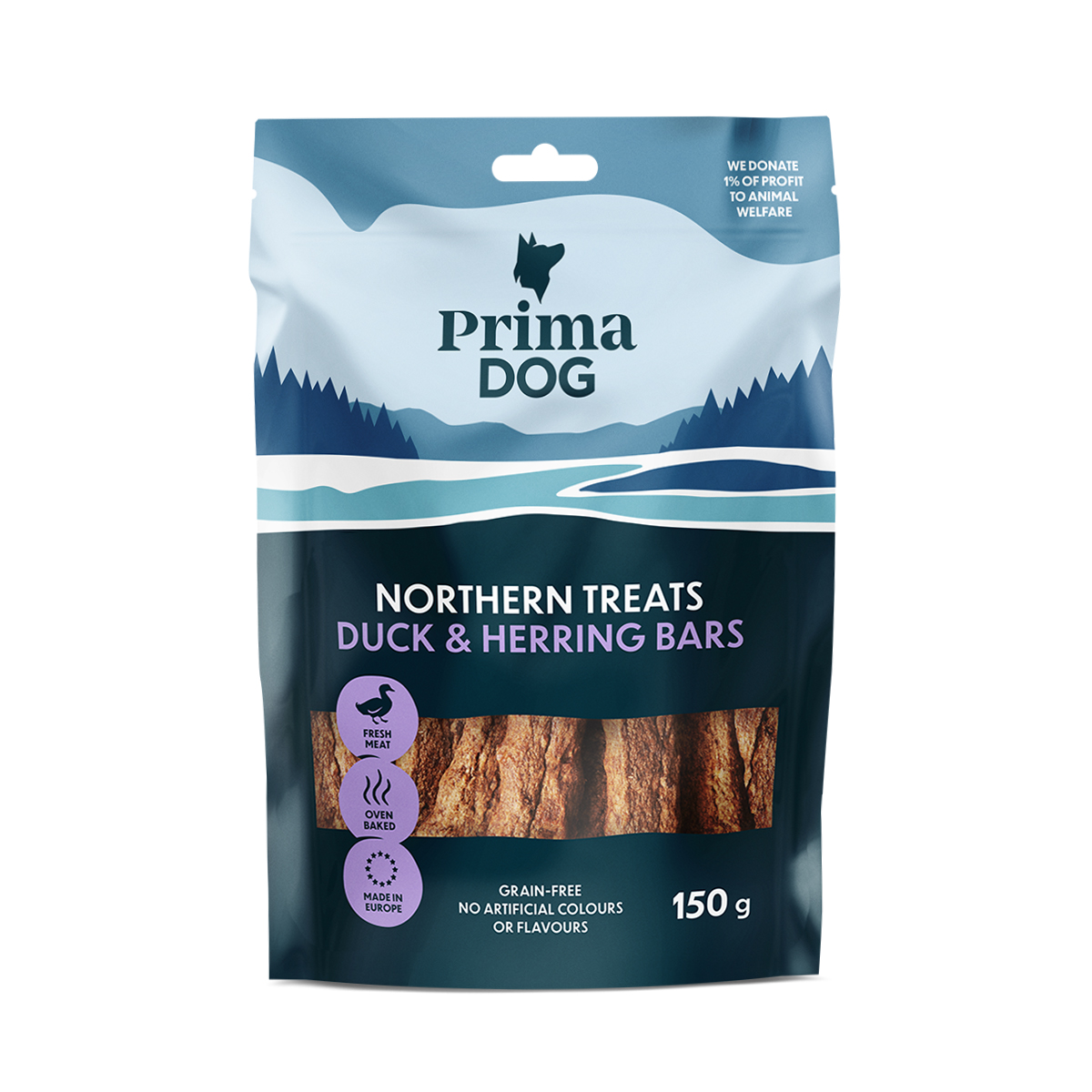 חטיף לכלב פרימה דוג נורטרן טריט – רצועות בשר מיובש ברווז והרינג