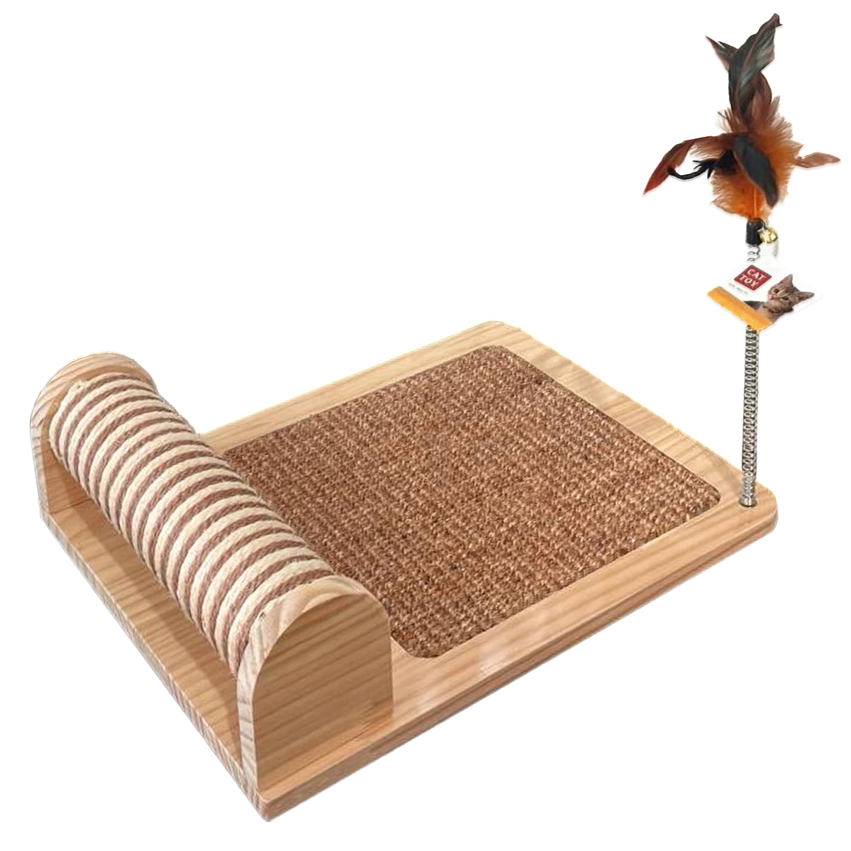 מתקן גירוד לחתול עשוי לוח עץ מלבני עם גליל