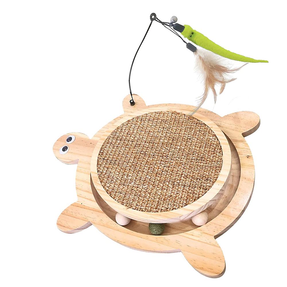 מתקן גירוד לחתול עשוי לוח עץ עם כדורים נעים במסילה בצורת דג