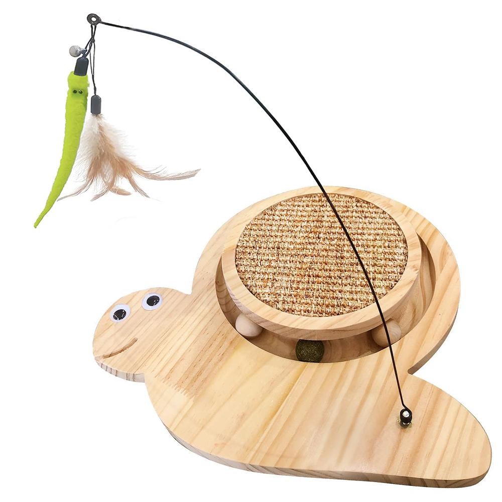מתקן גירוד לחתול עשוי לוח עץ עם כדורים נעים במסילה בצורת שבלול