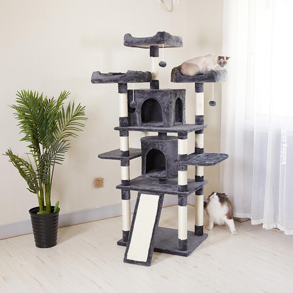 מתקן גירוד לחתולים RN0110 מגרדת 7 קומות – 3 מרפסות – אפור 167×48×60 סמ