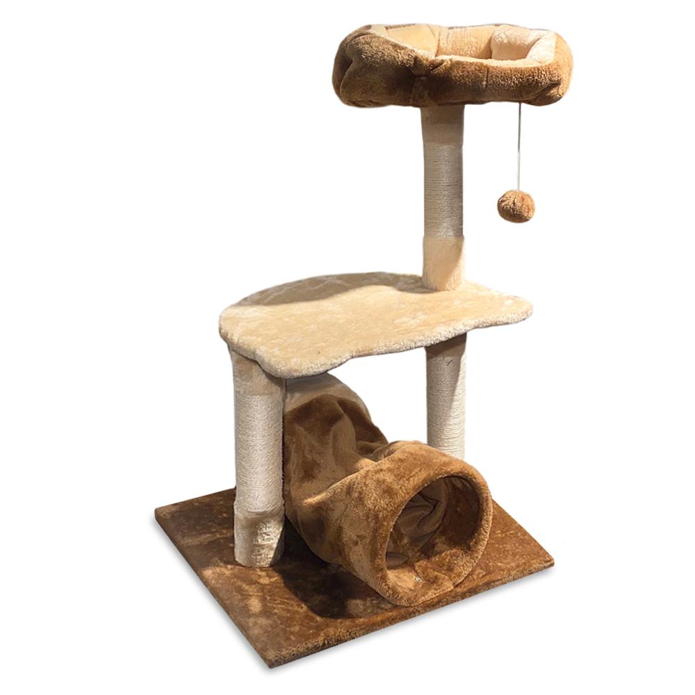 מתקן גירוד לחתול LZ0147 שלוש קומות עמודי גירוד מנהרה כדור מרופד למשחק מיטה מפנקת מומלץ לחתולים בוגרים וגורים