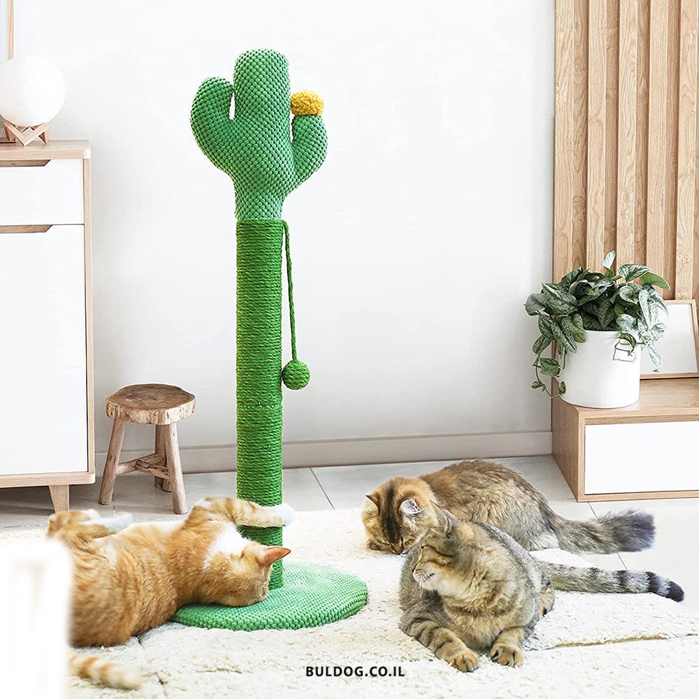 מתקן גירוד לחתול בצורת קקטוס עמוד גירוד גבוה בעיצוב מיוחד עם בסיס עגול רחב