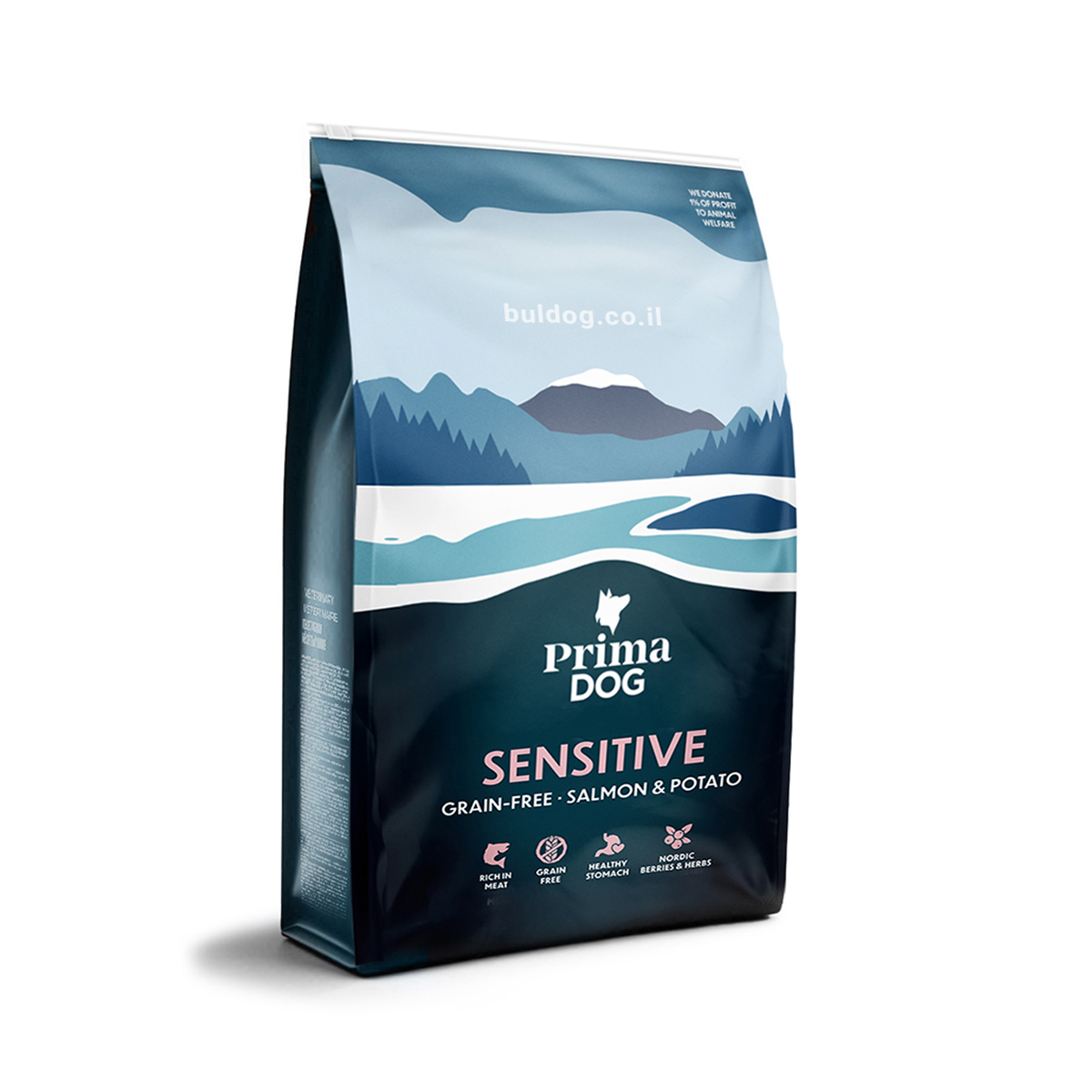 פרימה דוג ללא דגנים סלמון ותפוחי אדמה לכלב בוגר כל הגזעים31.5 קג